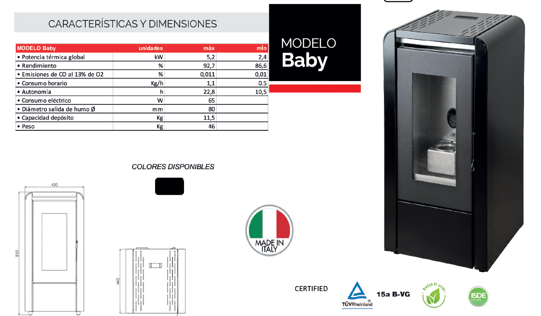 Consumo horario: 1,1 ~ 0,5 hg/h